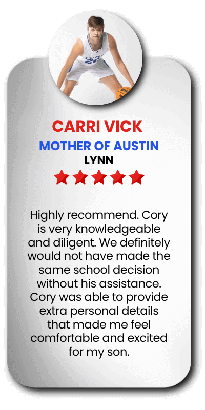Not a fit: families seeking guarantees, “D1 or nothing,” or who ignore academics. We won’t tell you what you want to hear; we’ll tell you what you need to hear.